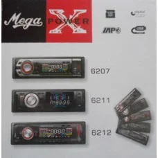 Стереофоническая автомагнитолла MEGA 6212Радиоприёмник FM 87.5-108MHzПоддерживает USB,MMC,SD картыШумы..