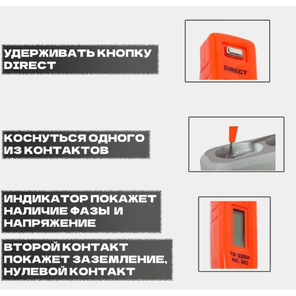 Эта отвертка для обнаружения фазного проводника и обнаружения точки разрыва.